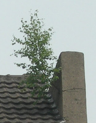 Und er wächst gar nicht mal so langsam. Letztes Jahr war er noch ein winziges Pflänzlein. Jetzt ist er schon höher als der Schornstein selbst. Irgendwann wird er höher sein als das Haus auf dem er wächst - das wär doch was!